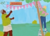 Nesta festa de aniversário, os leitores vão encontrar formas geométricas (e aprender seus nomes) em todos os lugares: no pula-pula, no gira-gira, nas bandeirolas da decoração...